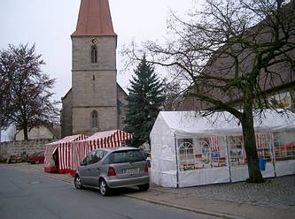 Blick von der östlichen Kirchhofmauer, die zur Zeit neu aufgemauert wird.