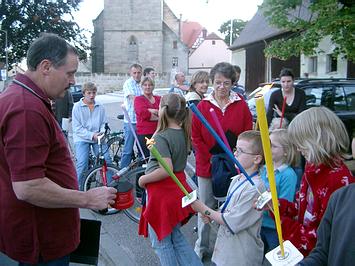 Anschließend zündet Hans Kleinschroth die Fackeln an
